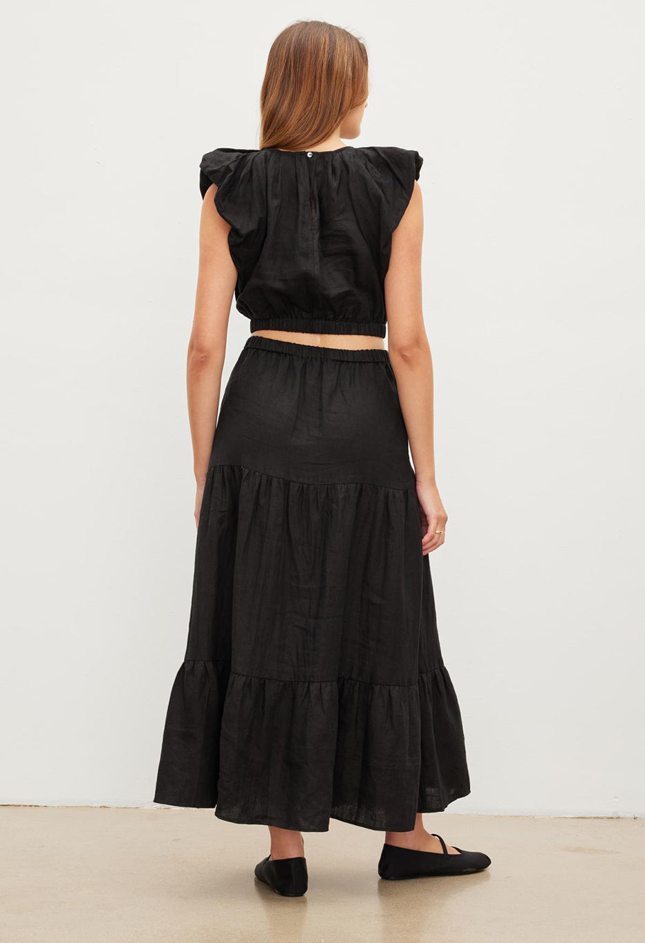 Ginger Woven Linen Tired Skirt Dress