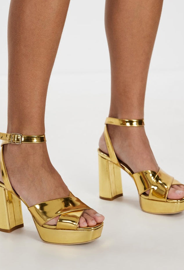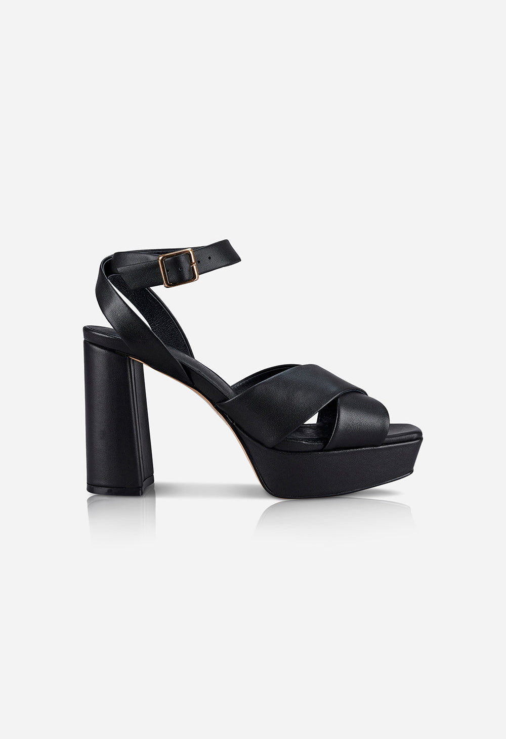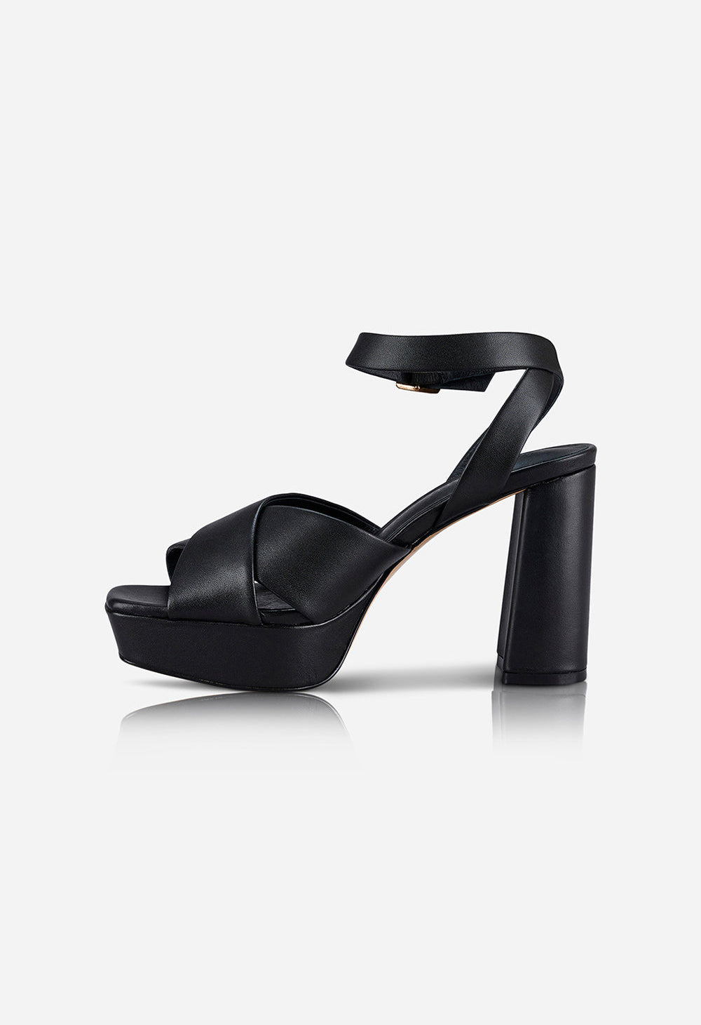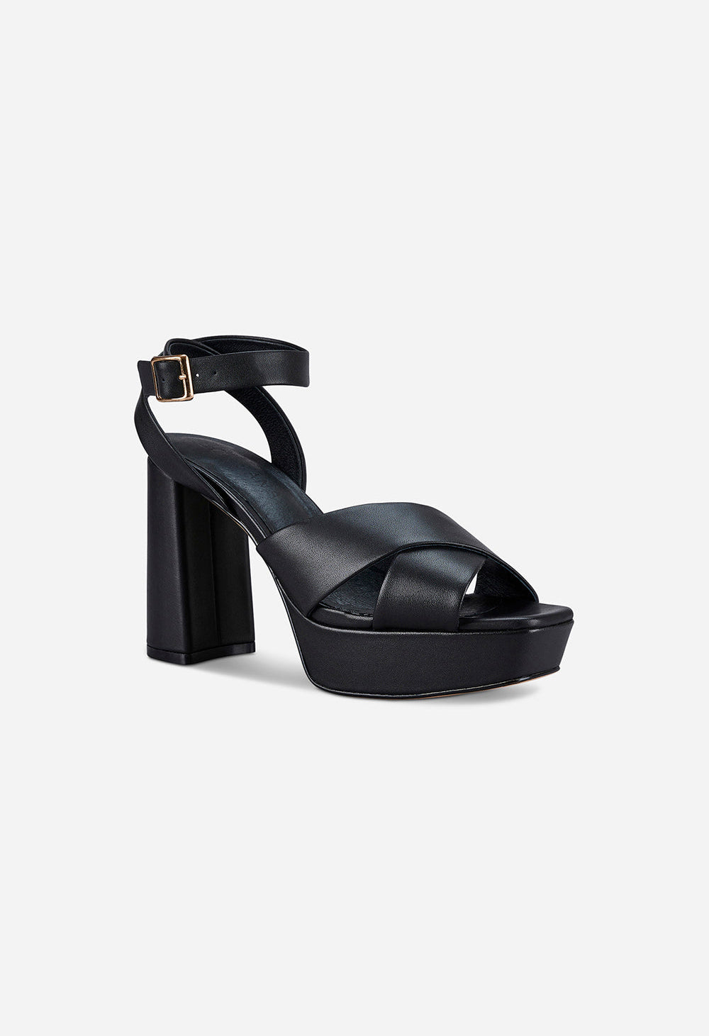 Make a statement with the Xanadu heel by Sol Sana. An elegantly tapered square toe sole sits atop a 3cm front platform to support a 9cm block heel. High quality leather straps cross the front of the foot and securely wrap the ankle.