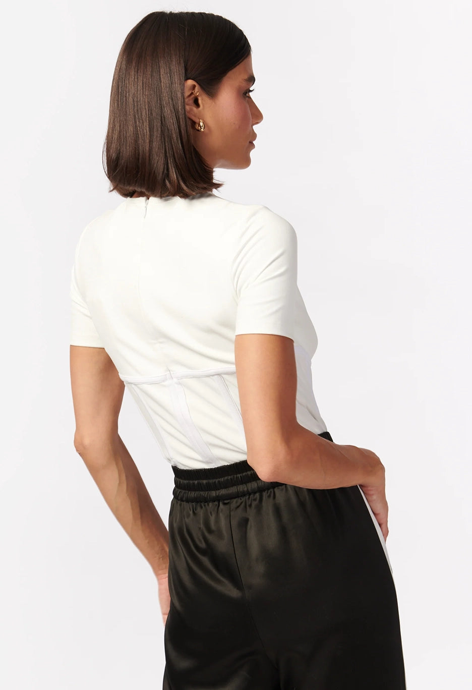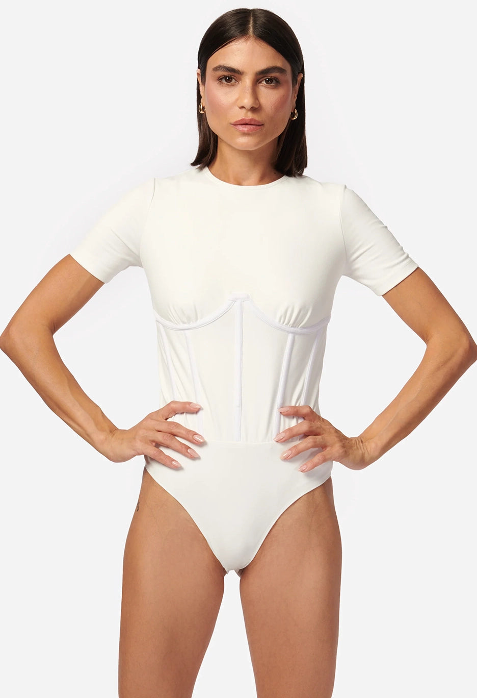 The Xenia Bodysuit offers a sleek and flattering silhouette with its corset style design. Featuring underwire and boning, this bodysuit provides the support and structure of a corset while ensuring comfort. The center back invisible zipper closure with hook and eye adds a convenient touch to this stylish piece.